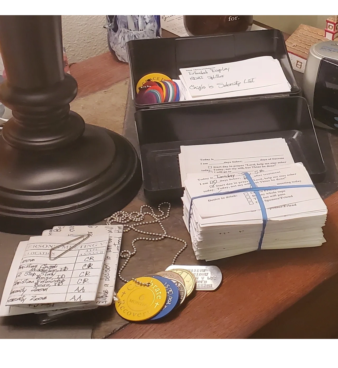 I made this Daily Card to keep track of many things as days of sobriety, prayer, plans for the day and at the end of the day do Step 10 or points gratefulness. I put these filled in cards in a box and review them for encouragement.